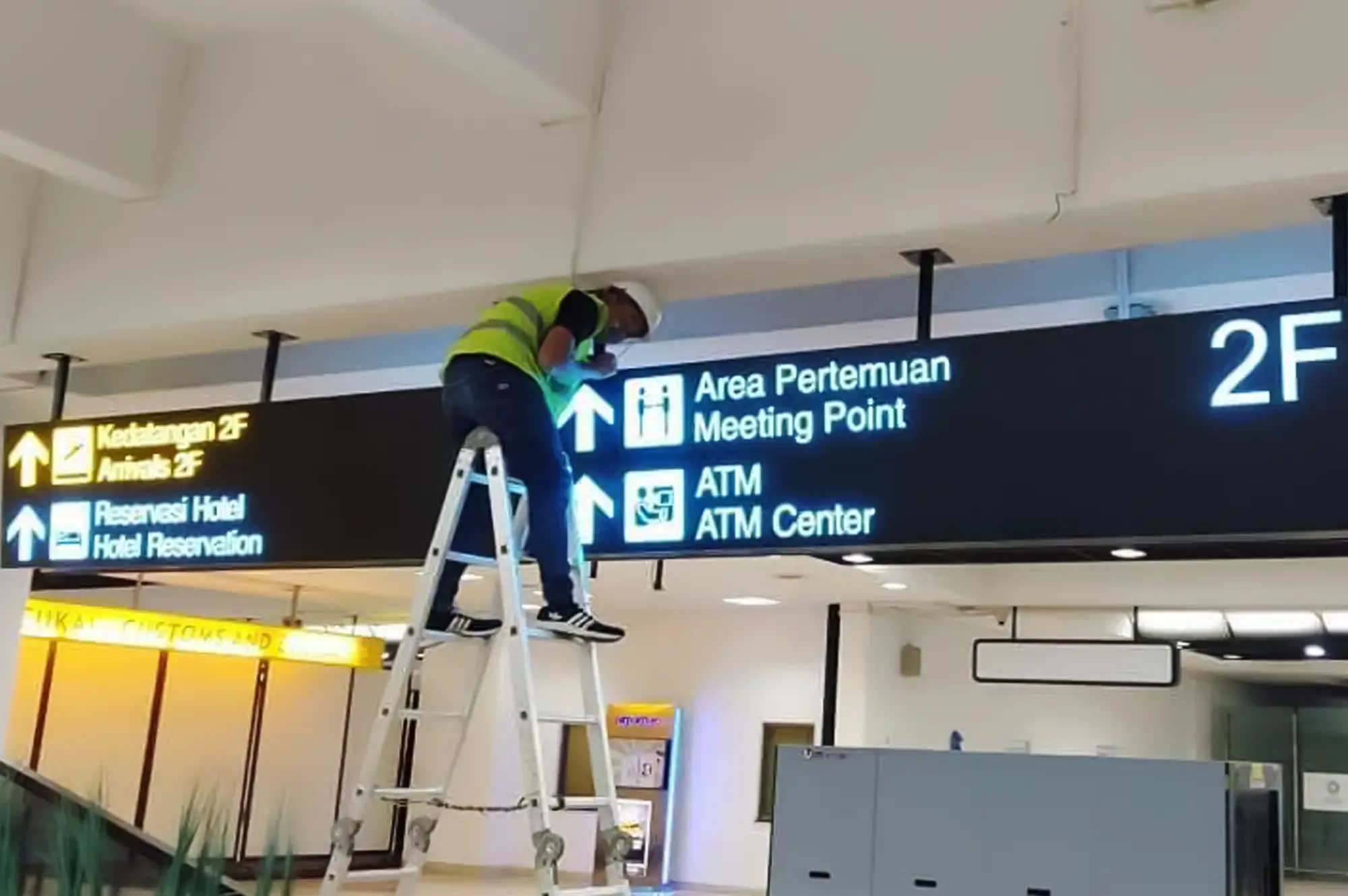 Dalam proyek huruf timbul BIJB Kertajati, kami menjalankan prosedur kerja ketat dengan hasil presisi tinggi untuk area bandara internasional.